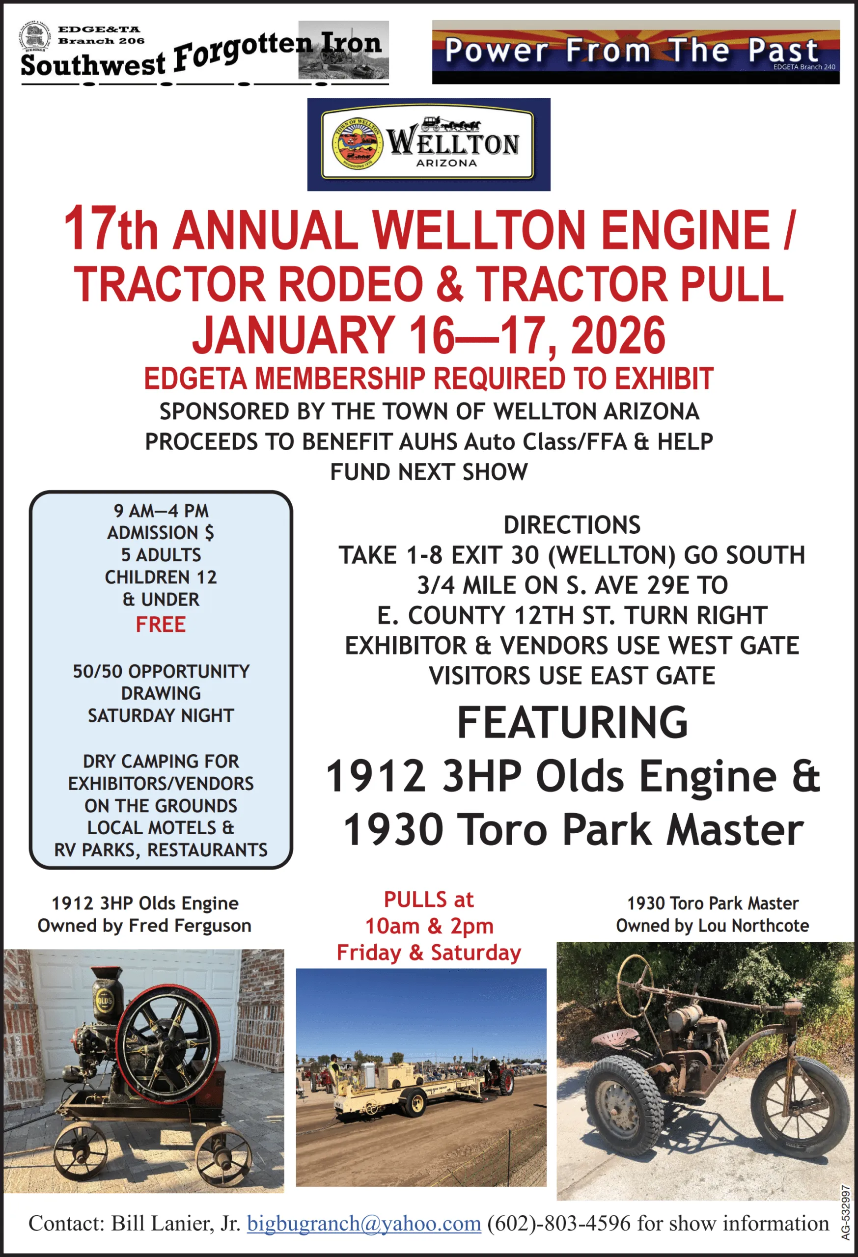 PLEASE NOTE: The Early Day Gas Engine & Tractor Association does not purchase or help with the individual sale of engines, tractors, antiques and other items. Please contact an EDGETA Branch near you to inquire about upcoming swap meets or sales.